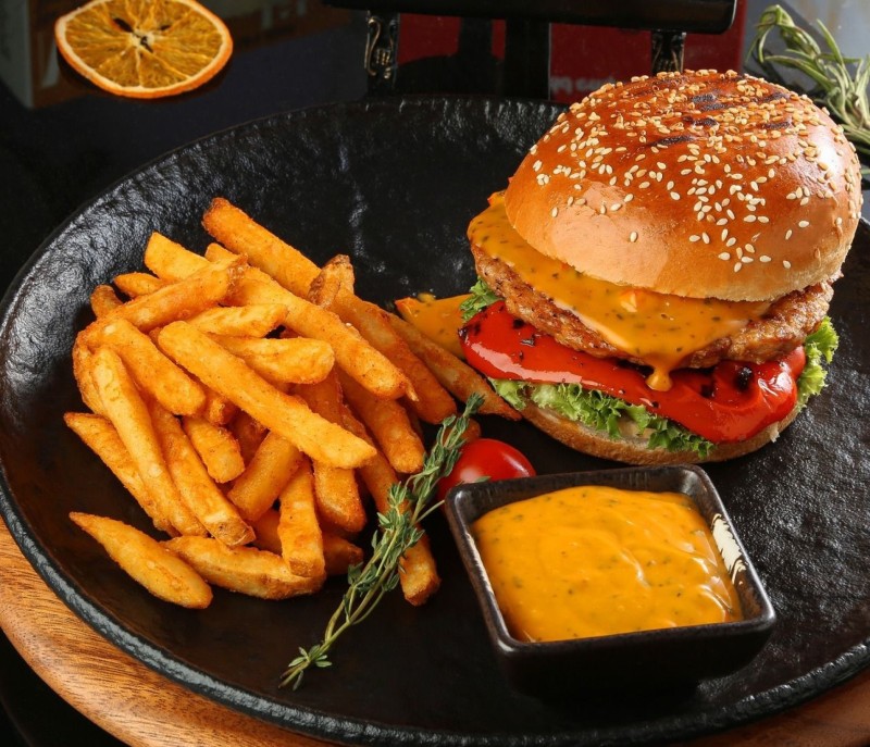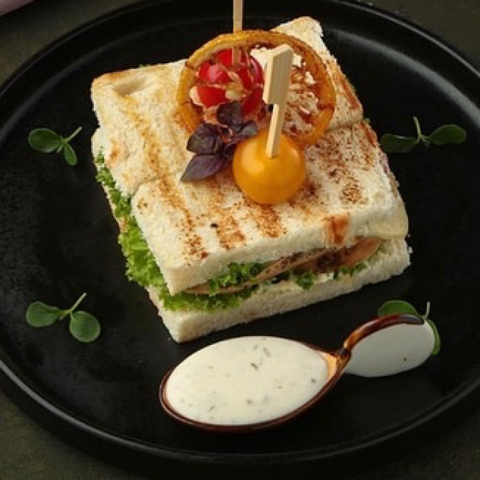 (220 سعرة حرارية)دجاج مشوي مع اسموك تركي مع بيض اوملت مع جبنه شيدر مع طماطم مع خس و صوص كوكتيل